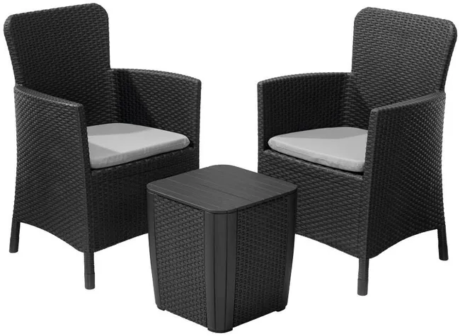 Conjunto Relax De Jardín Mesa De Resina Con Contenedores Y Sofás Nuevo Naterial