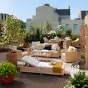 ¡Elija la comodidad con los muebles de jardín Medena! Compuesto por un sofá esquinero para relajarse, una mesa de centro y dos cómodos sillones, el conjunto Medena tiene capacidad para 5 personas. Un completo y confortable salón esquinero Compuesto por un gran sofá de 3 plazas, una mesa de centro y 2 sillones individuales, este conjunto te permitirá disfrutar de cálidos momentos al aire libre. Con influencias del ratán, su trenzado está fabricado en resina de polietileno en forma semicircular para un aspecto más realista y un tacto muy agradable. Sus cojines tienen efecto algodón, para un tacto suave y confortable. Confeccionados en poliéster, han sido tratados con un tratamiento anti-UV y repelente al agua, que retrasa la decoloración y permite una limpieza inmediata de las manchas accidentales. La mesa está equipada con un cristal transparente que resalta el acabado con efecto de ratán natural y al mismo tiempo ofrece una superficie plana para un uso práctico. Fabricada íntegramente en aluminio, está diseñada para resistir los vaivenes del tiempo. Este material, conocido por su resistencia y ligereza, permite mover fácilmente la mesa, según tus deseos. Bien diseñado, está equipado con 4 pies regulables para nivelar la mesa y protegerla del contacto directo con el suelo, para garantizar siempre su estabilidad. Un estilo natural y acogedor Su diseño de inspiración bohemia combina formas rectangulares y cuadradas para crear el efecto de un salón auténtico, acogedor y estético. Para un conjunto armonioso, las patas en forma de “U” de la mesa Medena están fabricadas en aluminio con efecto madera natural, lo que amplifica su aspecto auténtico. Combina el conjunto Medena con el reposapiés de la misma serie. Consejos de mantenimiento Para preservar la calidad y las propiedades estéticas de sus muebles, le recomendamos preparar el rincón Medena para el invierno en un lugar protegido de la humedad o protegerlo con una funda impermeable adecuada. Asimismo, los cojines son completamente desenfundables y deben protegerse de la humedad cuando no se utilizan. Para garantizar una elección viable y duradera, los repuestos de Medena están disponibles previa solicitud como parte de la garantía. Los cojines son acogedores y confortables, con un tacto “efecto algodón” muy suave. Los cojines son completamente desenfundables para facilitar el mantenimiento. Tejidos de poliéster, con tratamiento anti-UV y repelente al agua, para resistir los agentes atmosféricos