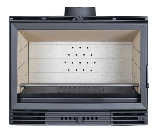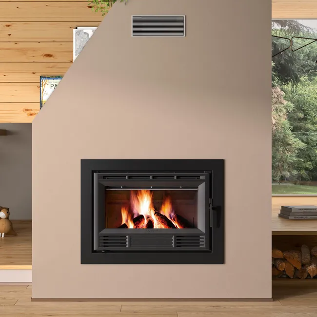 Hogar de leña modelo Panadero LMI 65 Eco fabricado con triple cuerpo de acero. Dispone de una potencia de 7,1 kW y sistema de triple combustión. Además, cuenta con sistema de cristal limpio, ventilador tangencial y tiene capacidad para acoger troncos de hasta 50 cm. Medidas: 62,3 x 52 x 48 cm (ancho x alto x fondo).