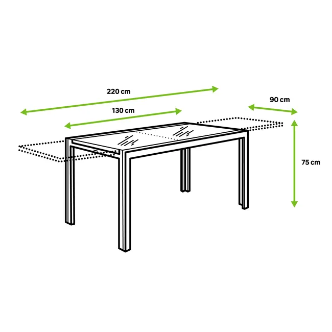 | Ancho de la tabla extendida (en cm) | 220 |