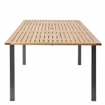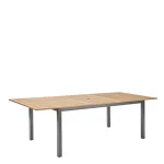 Mesa de comedor para jardín o terraza modelo Oris, de Naterial, con capacidad para reunir de 6 a 8 personas fuera de casa. Está fabricado en aluminio gris con tapa de madera maciza de eucalipto. Dispone de un hueco central en el salpicadero para colocar un parasol (no incluido) para protegerte del sol y ganar comodidad. Su sistema extensible está realizado con un mecanismo de mariposa en la parte central. Dispone de certificado FSC que garantiza que la madera ha sido obtenida de bosques gestionados de forma sostenible y respetuosa con el medio ambiente. Para su mantenimiento, recomendamos guardarlo en interiores, alejado de la luz solar directa, y guardarlo en un lugar seco y ventilado cuando no esté en uso (o cubrirlo con una funda para muebles). Combina con el resto de elementos de la serie Oris diseñada para el jardín, terraza o patio, disponibles en Leroy Merlin. Medidas: 180/240 x 75 x 100 cm (ancho x alto x fondo).