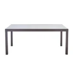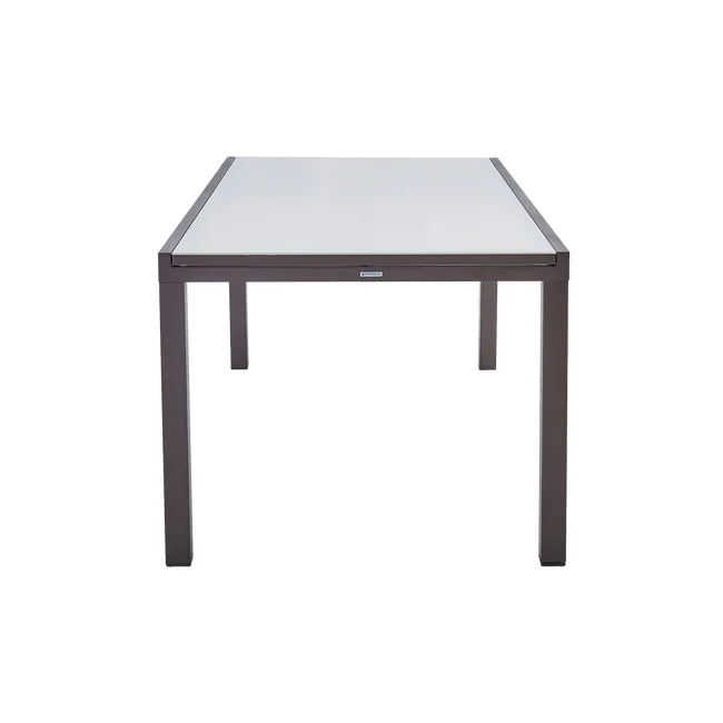 Mesa de jardín Naterial Lyra II Up/Down en color marrón para alojar hasta 10 invitados. Su bandeja se desliza para revelar una extensión de 80 cm y pasar de una mesa compacta de 180 x 90 cm a una generosa longitud de 2,60 m. Su bandeja de cristal liso es fácil de limpiar y no sufre los cambios del tiempo. Su estructura de aluminio es muy resistente al óxido y a la intemperie. Para conseguir estabilidad, las mesas están equipadas con una pata ajustable que compensa las irregularidades de tu terraza. Sus líneas de diseño y colores combinan a la perfección con las sillas y sillones de la gama Naterial Orion II. Para alargar la vida de tu mesa, recuerda protegerla de los ataques del invierno cubriéndola con una funda. Medidas: 96 x 75 x 180/260 cm (ancho x alto x largo).