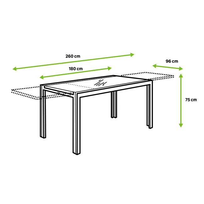 | Tipo de producto | Mesa de jardín extensible |