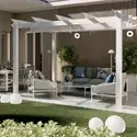 La pérgola independiente Naterial Omega se puede montar permanentemente en la terraza para proteger a los huéspedes durante todo el año del sol, el viento o la lluvia. Cubriendo una gran superficie, puede albergar cómodamente una mesa y sillas o incluso un gran rincón de relajación instalado en su interior. La tienda rectangular de 2,85×4 metros de espesor es repelente al agua, bloquea el 100% de los rayos UV y se puede adaptar según sus deseos (ciérrela para refugiarse o déjela abierta para que entre el aire). La estructura de aluminio no se oxida y es resistente a los agentes atmosféricos. Para prolongar la vida útil de la pérgola, puede reemplazar el toldo.