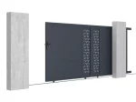 Portón corredero eléctrico L416 x H180 cm de aluminio semiperforado con motivos Antracita – GREGOR