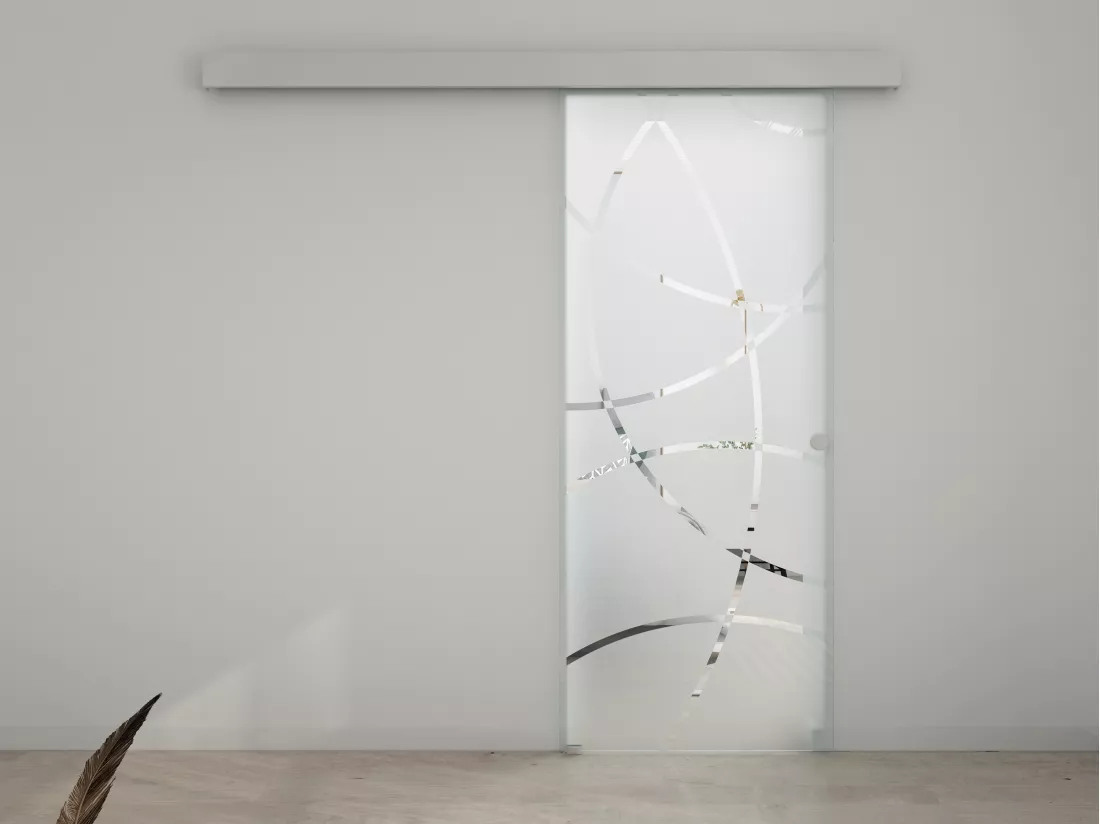 ¡Atrévete a ser original con las generosas curvas y el diseño de la puerta corrediza de vidrio templado HEIDI, sobria y única!