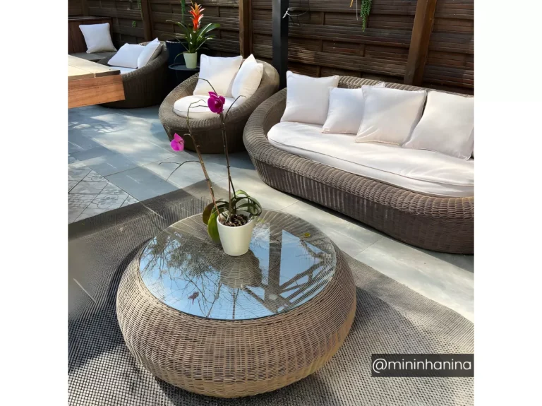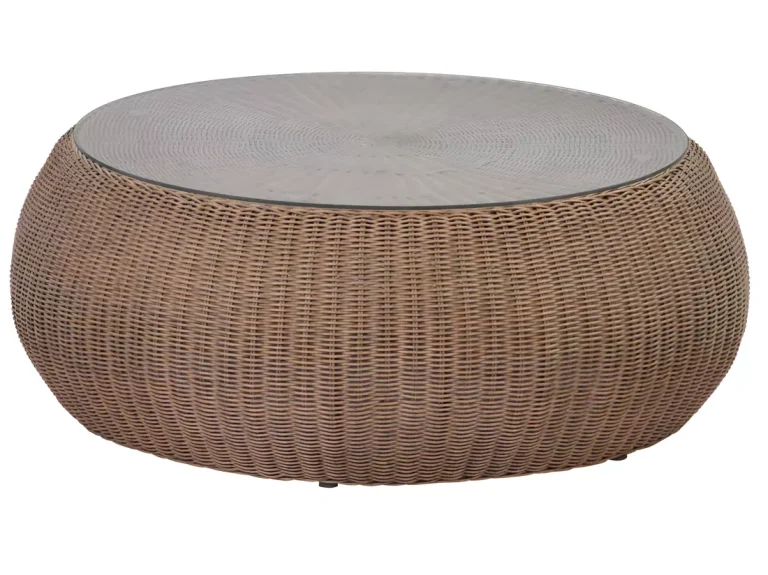 Mesa de centro de jardín en resina tejida color caramelo – WHITEHEAVEN